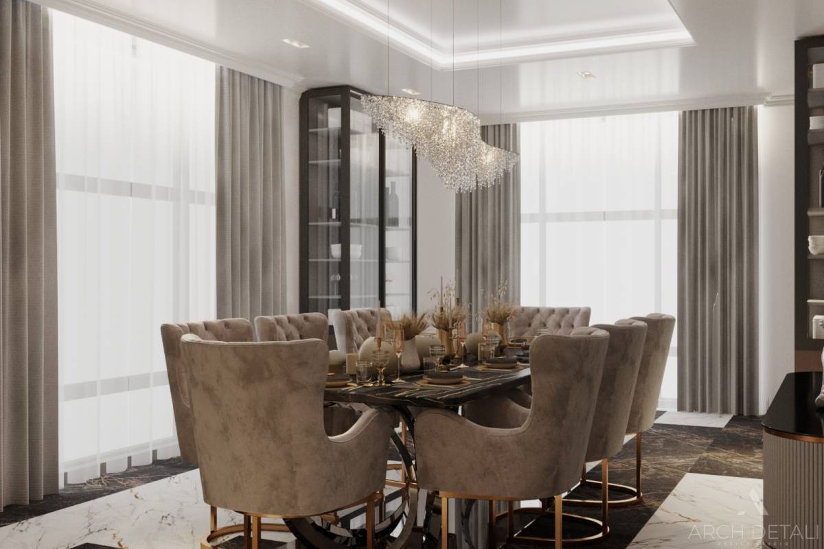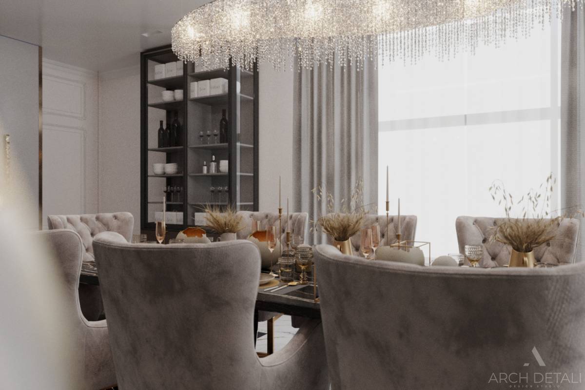 Этот дизайн-проект просторной трехкомнатной квартиры площадью 120 м2 в ЖК "Небо" выполнен в современном минималистичном стиле. Центром интерьера стала воздушная гостиная с панорамным остеклением и выходом на просторную террасу. Для отделки использованы натуральные материалы - дерево, камень, текстурная штукатурка. Кухня оформлена в теплых оттенках, на рабочей зоне разместились все необходимые модули и техника. Отдельно выделена столовая зона с обеденным столом. Две спальни обустроены встроенными шкафами, удобными кроватями и прикроватными тумбочками. В гостевой ванной использованы натуральный камень и дерево. Благодаря удачному зонированию и обилию света интерьер этой квартиры отличается функциональностью и эстетикой.