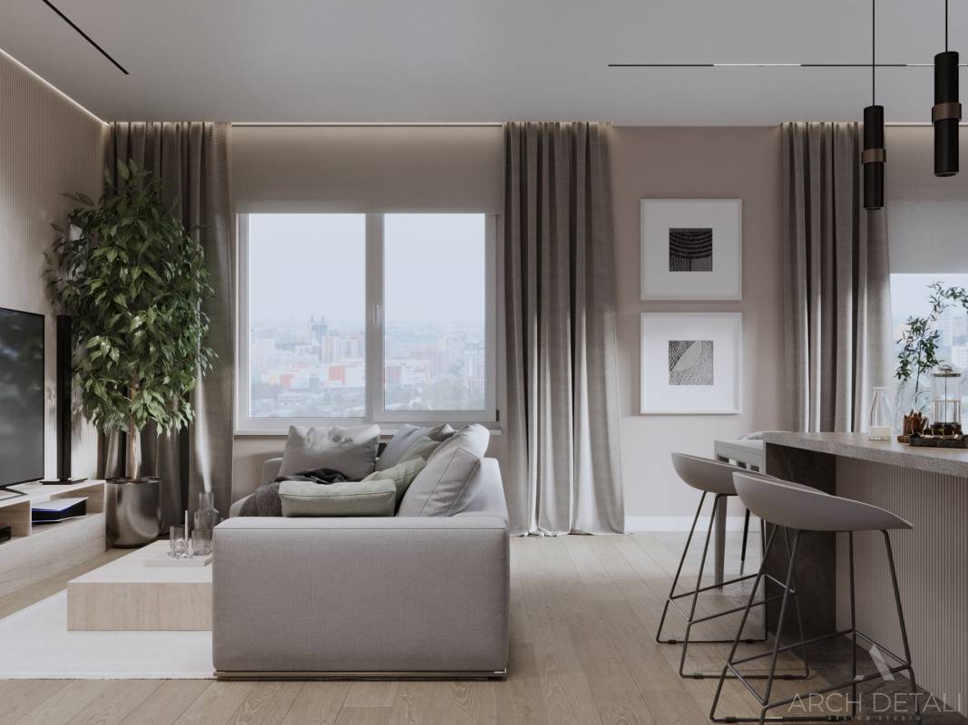 Проектдизайна интерьера двухкомнатной квартиры площадью 72 кв.м в новостройке ЖК Настоящее от застройщика Система Галс. Целью проекта было создание современного и комфортного пространства для молодой пары. Дизайнеры выполнили зонирование на общественную и спальную зоны, разработали открытую планировку кухни-гостиной, предусмотрели пространство для рабочей зоны. В оформлении интерьера использованы натуральные оттенки, текстуры натурального дерева, камня, металла. Реализован проект «под ключ» с применением качественных финишных материалов.