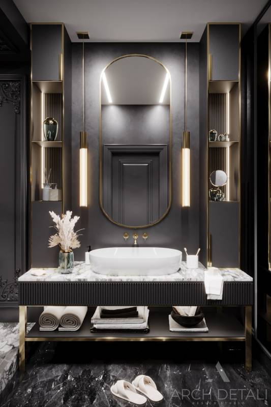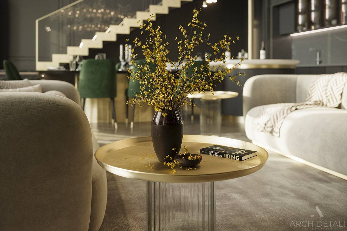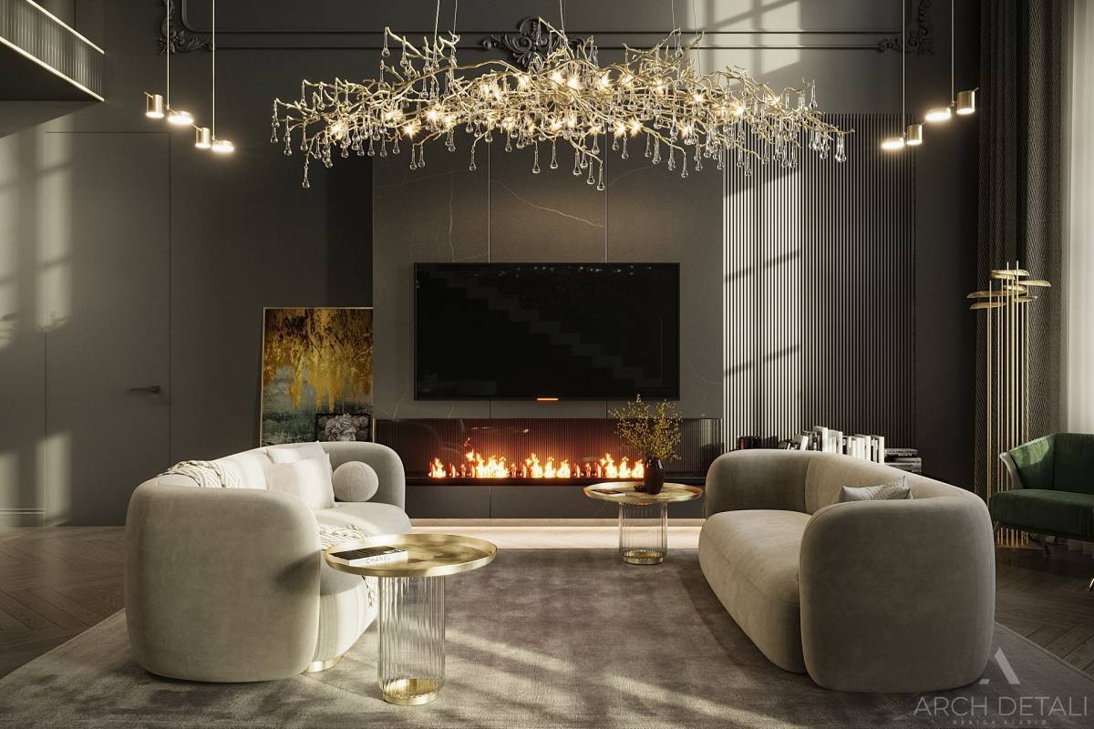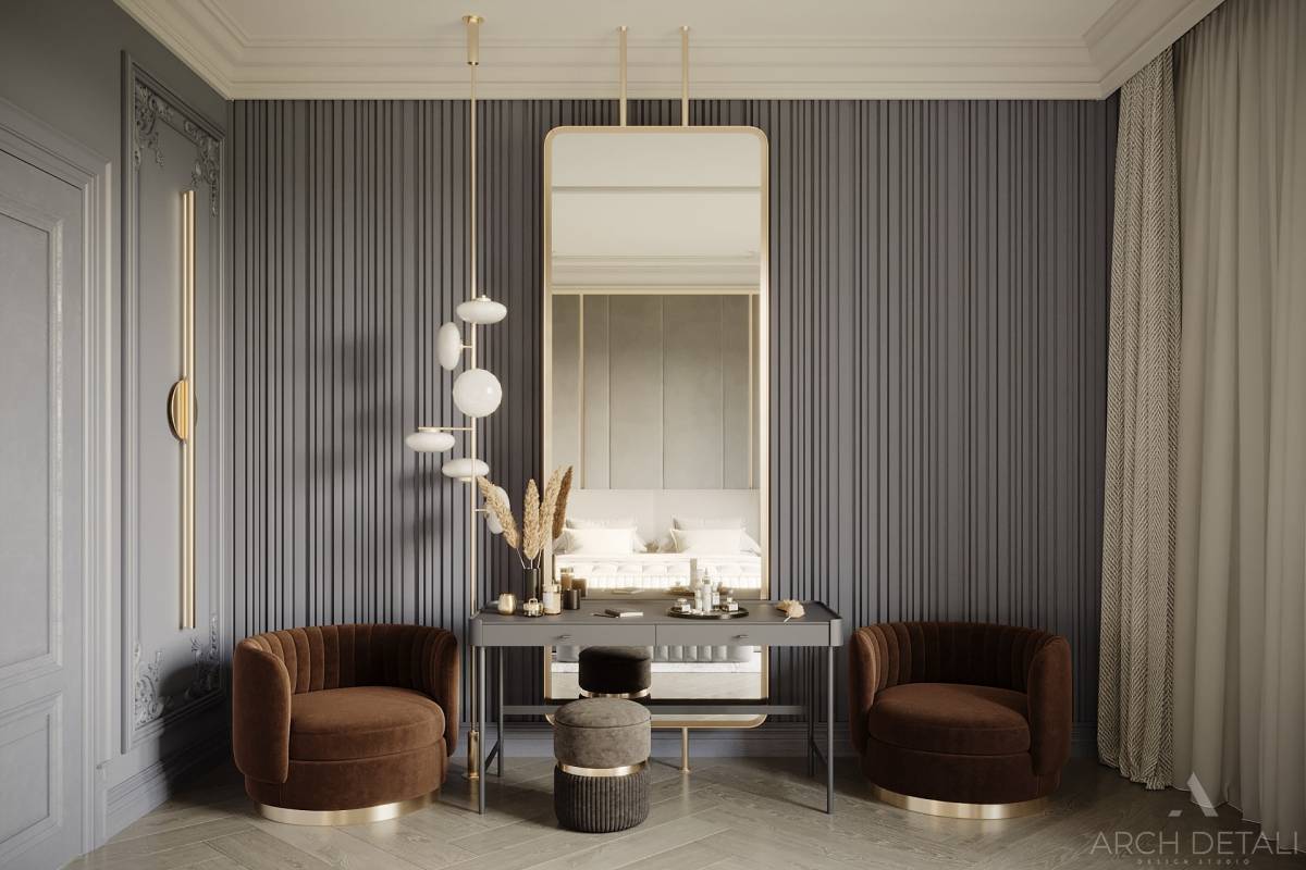 Дизайн-проект выполнен в современном стиле с использованием классических элементов.