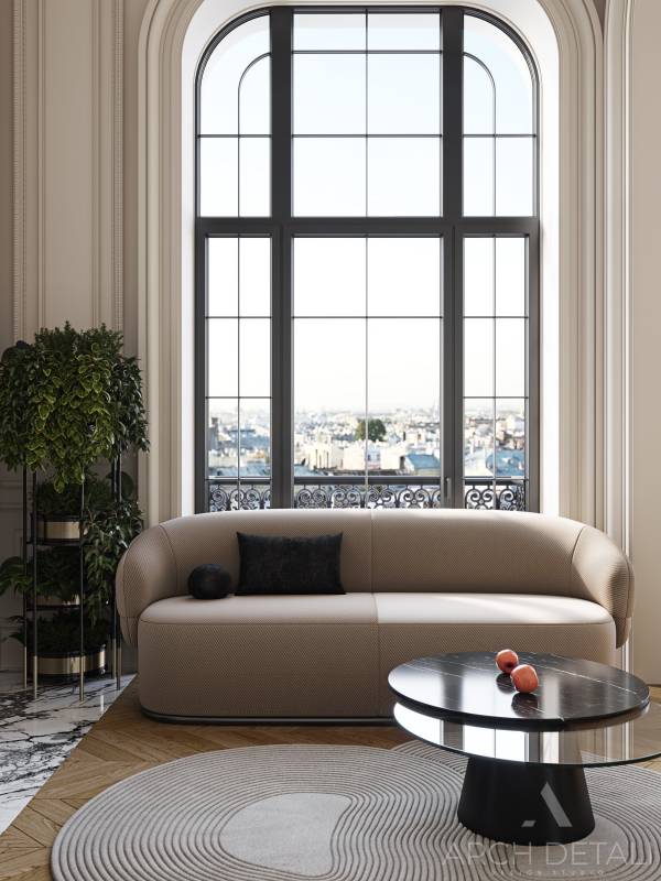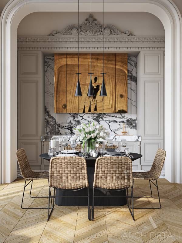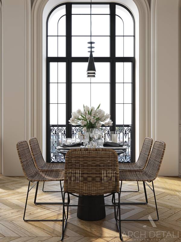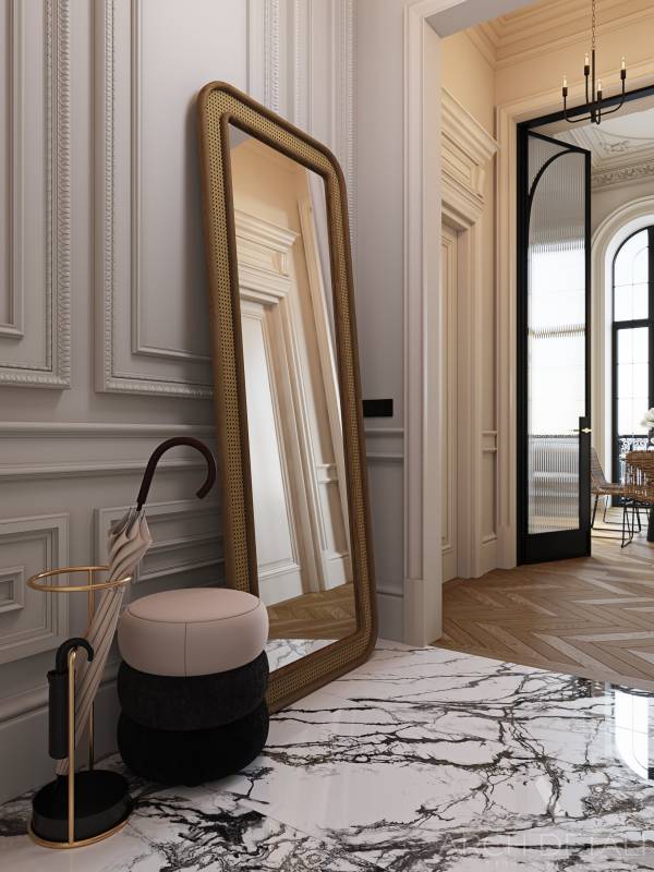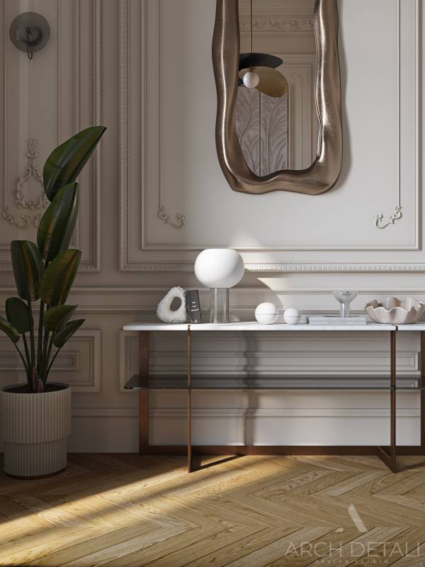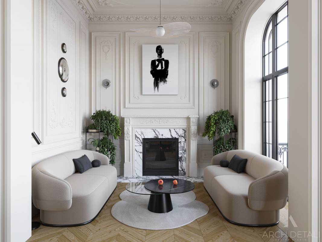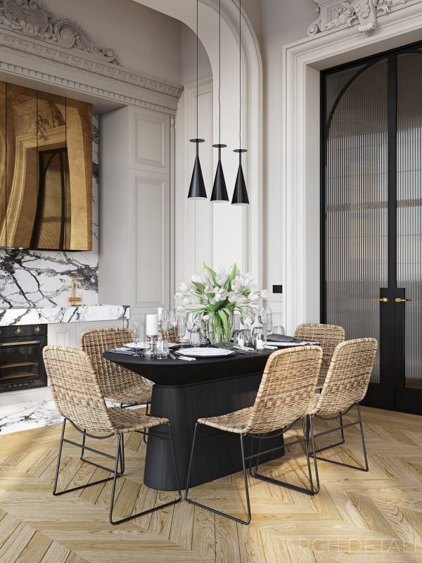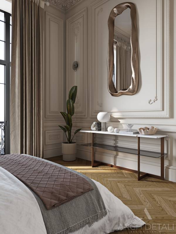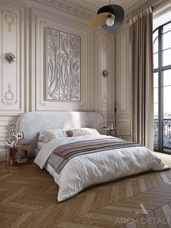Проект «Питерский шарм» от студии Arch Detali представляет собой гармоничное сочетание классических и современных элементов, отражающих атмосферу Санкт-Петербурга. Интерьер выполнен в светлых тонах с акцентами на изысканные детали, создавая уютное и стильное пространство для комфортной жизни.