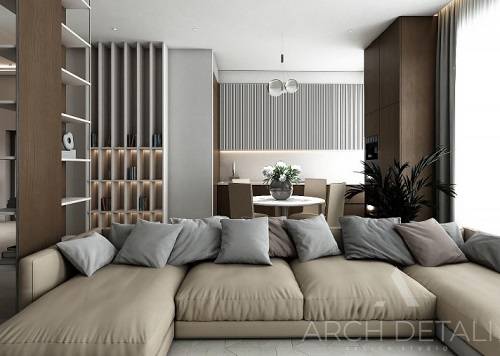 Наша компания Arch Detali разработала дизайн интерьера для квартиры на Серебряническом переулке. Мы создали современный и стильный интерьер, в котором особое внимание уделяется использованию пространства и функциональности. Комбинация светлых оттенков и акцентных элементов придает помещениям уют и элегантность.