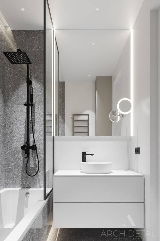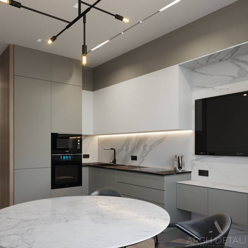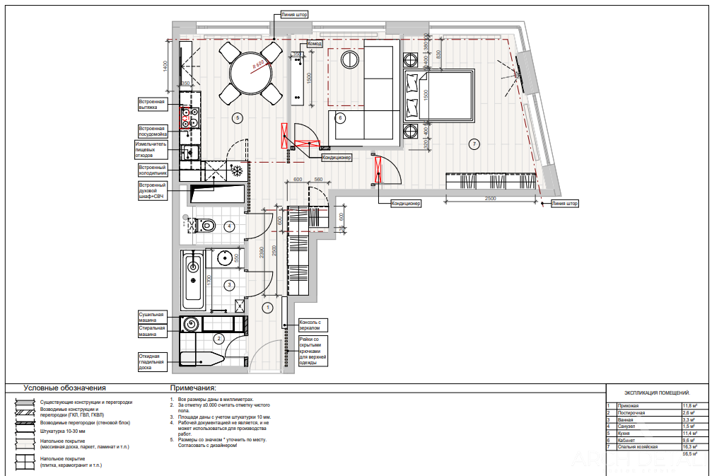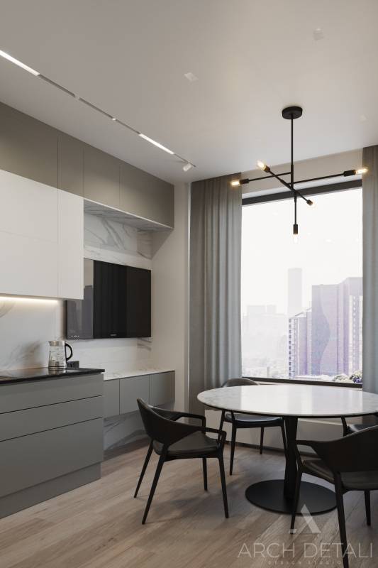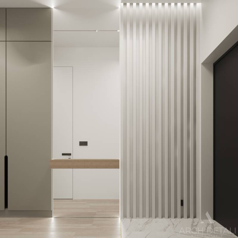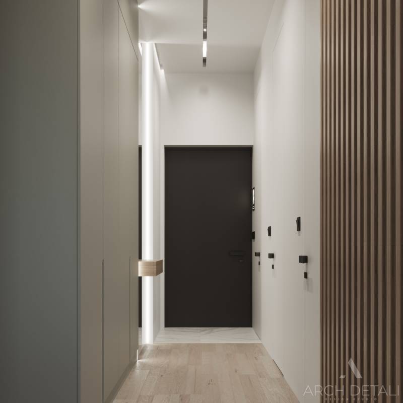 Этот проект 56-метровой однокомнатной квартиры в ЖК "Береговой" отличается грамотным зонированием и рациональным использованием каждого квадратного метра. Благодаря профессиональному подходу дизайнера, удалось максимально эффективно организовать пространство и создать комфортную планировку. Входная зона оборудована многофункциональным шкафом. Просторная кухня-гостиная выполнена в единой стилистике. Спальня изолирована и имеет собственный санузел. Дизайн интерьера современный и лаконичный с использованием качественных отделочных материалов.