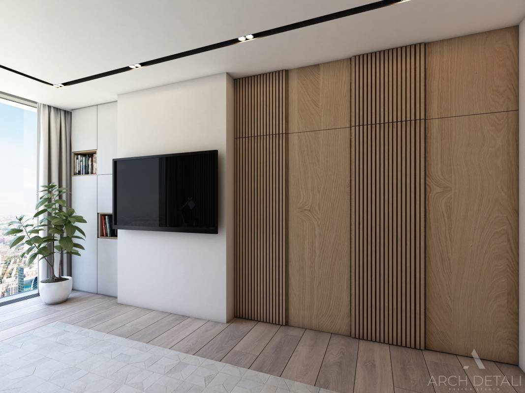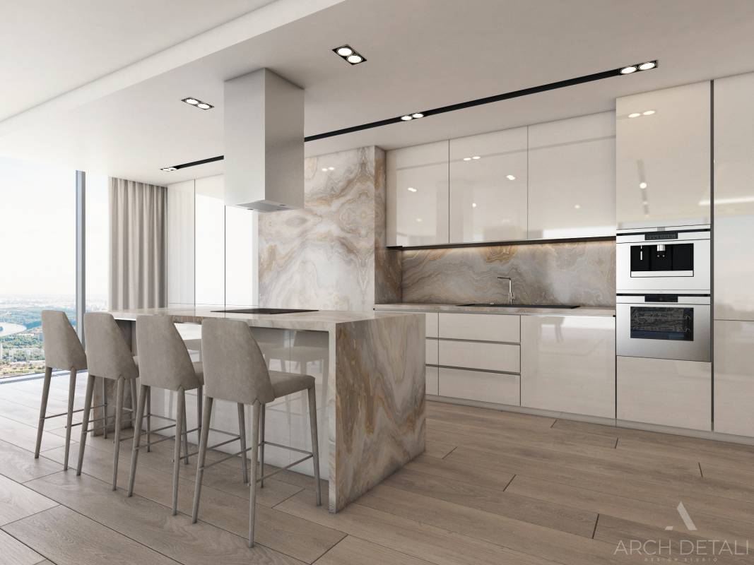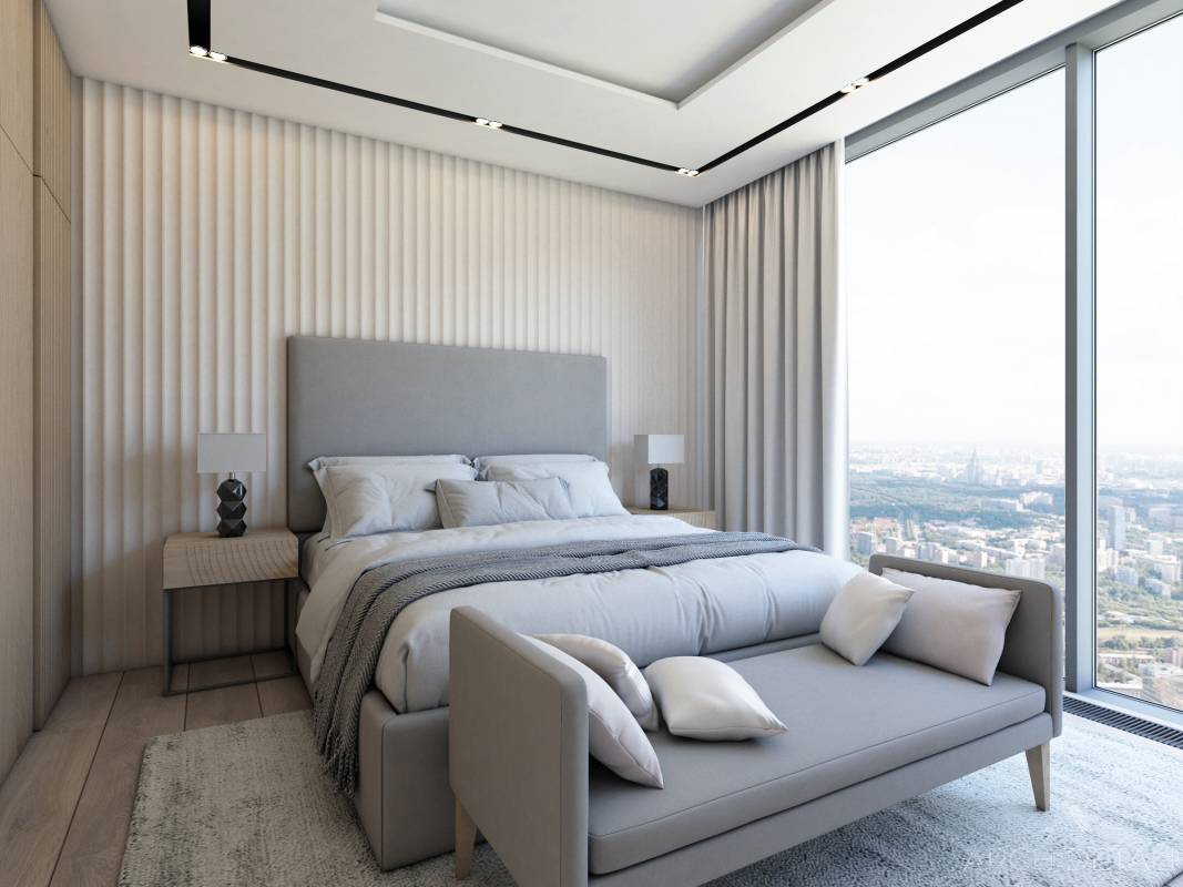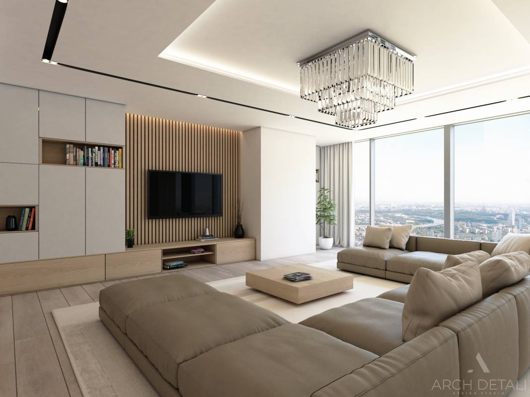 Этот дизайн-проект просторной трехкомнатной квартиры площадью 207 м2 расположен на верхнем этаже элитного жилого комплекса "Башня Санкт-Петербург" в Москва-Сити. Интерьер выполнен в элегантном классическом стиле с использованием натуральных материалов. Парадная прихожая с зоной хранения ведет в роскошную гостиную с камином, мягкой мебелью и панорамным остеклением. Стильная изолированная кухня оборудована встроенной техникой и кухонным гарнитуром ручной работы. Отдельно выделены столовая зона и кабинет. Две просторные спальни с ванными комнатами оформлены в единой пастельной цветовой гамме. Обилие натурального света, панорамные виды, изысканный декор и мебель премиум класса позволили создать в этой квартире атмосферу роскоши и комфорта.
