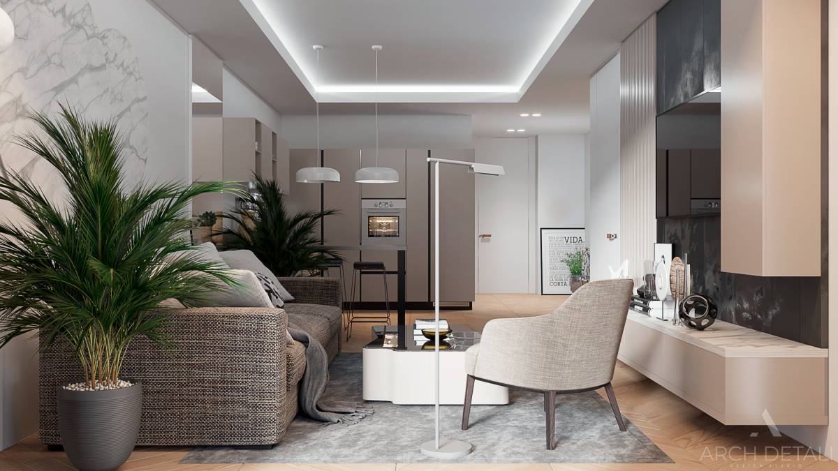 Дизайн-проект квартиры площадью 95 м2 в ЖК "Нева Тауэрс" в стиле лофт с эклектичными деталями и яркими акцентными элементами. Пространство выполнено в открытой планировке с винтажной мебелью, кирпичными стенами, декоративным камнем.