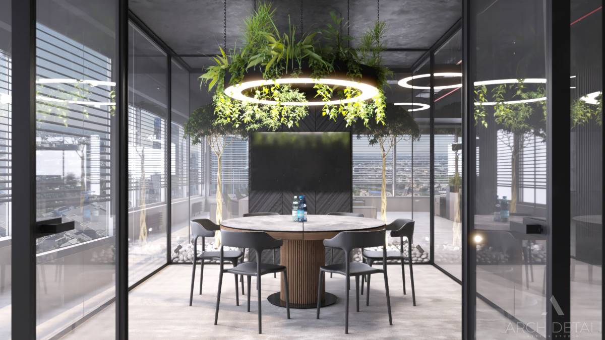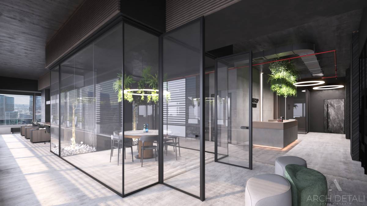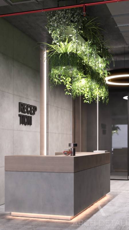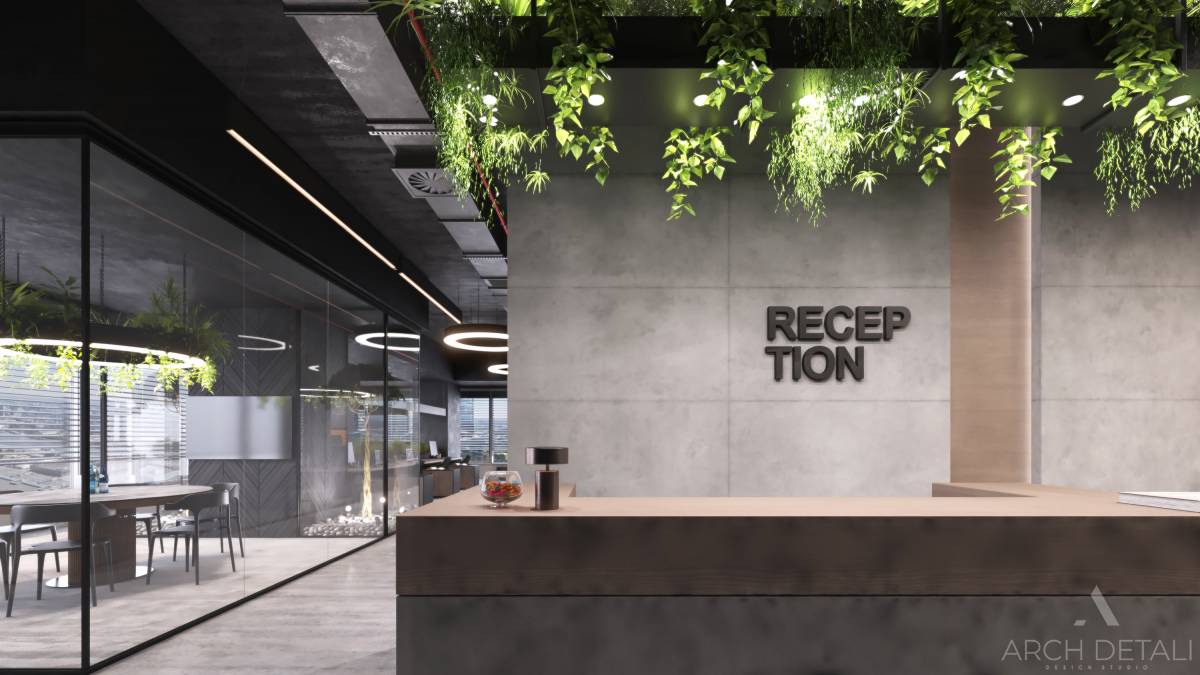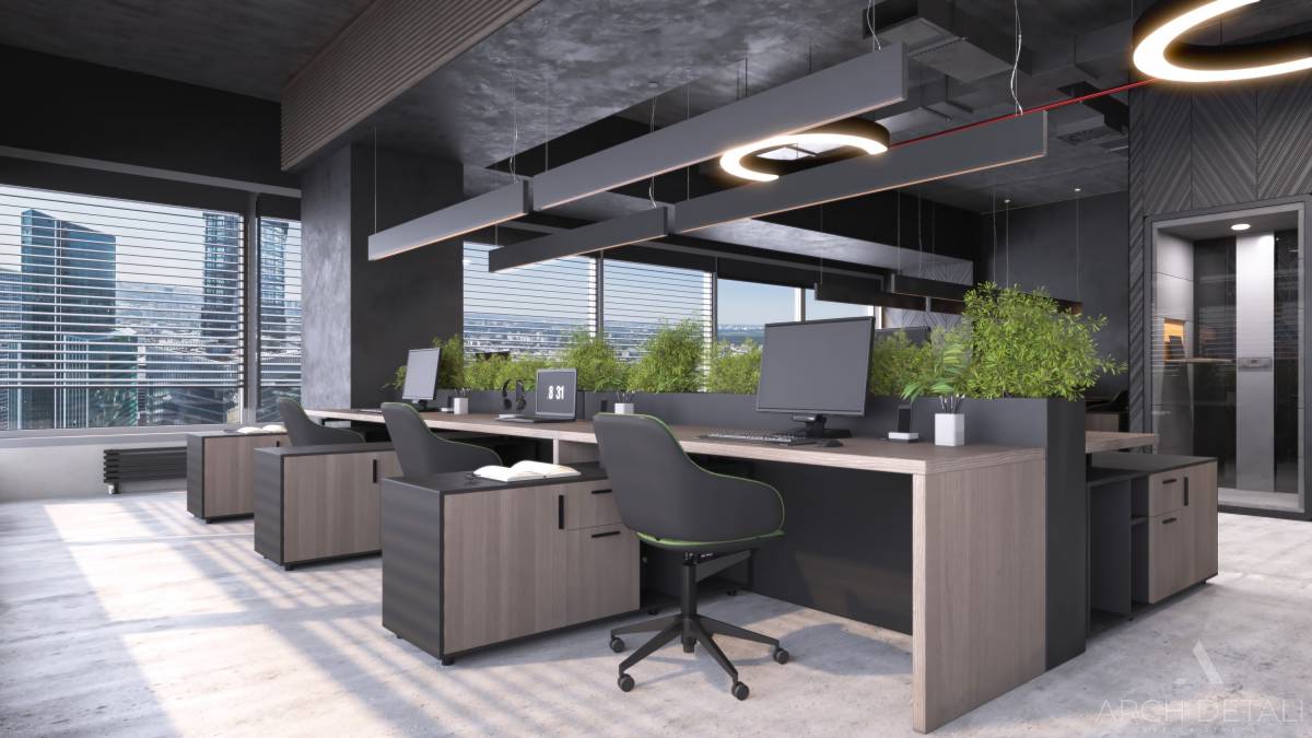 Дизайн-проект большого офиса в современном стиле с просторным открытым пространством. Продуманная планировка зон для работы, переговоров, отдыха. Использование натуральных отделочных материалов, мебели из натурального дерева. Оригинальные авторские светильники. Цветовое решение в светлых тонах с яркими акцентами. Эргономичные рабочие места. Зона лаунжа для неформального общения. Стеклянные перегородки между кабинетами.