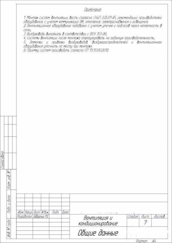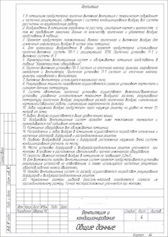 Проектная документация №4 по вентиляции и кондиционированию помещения